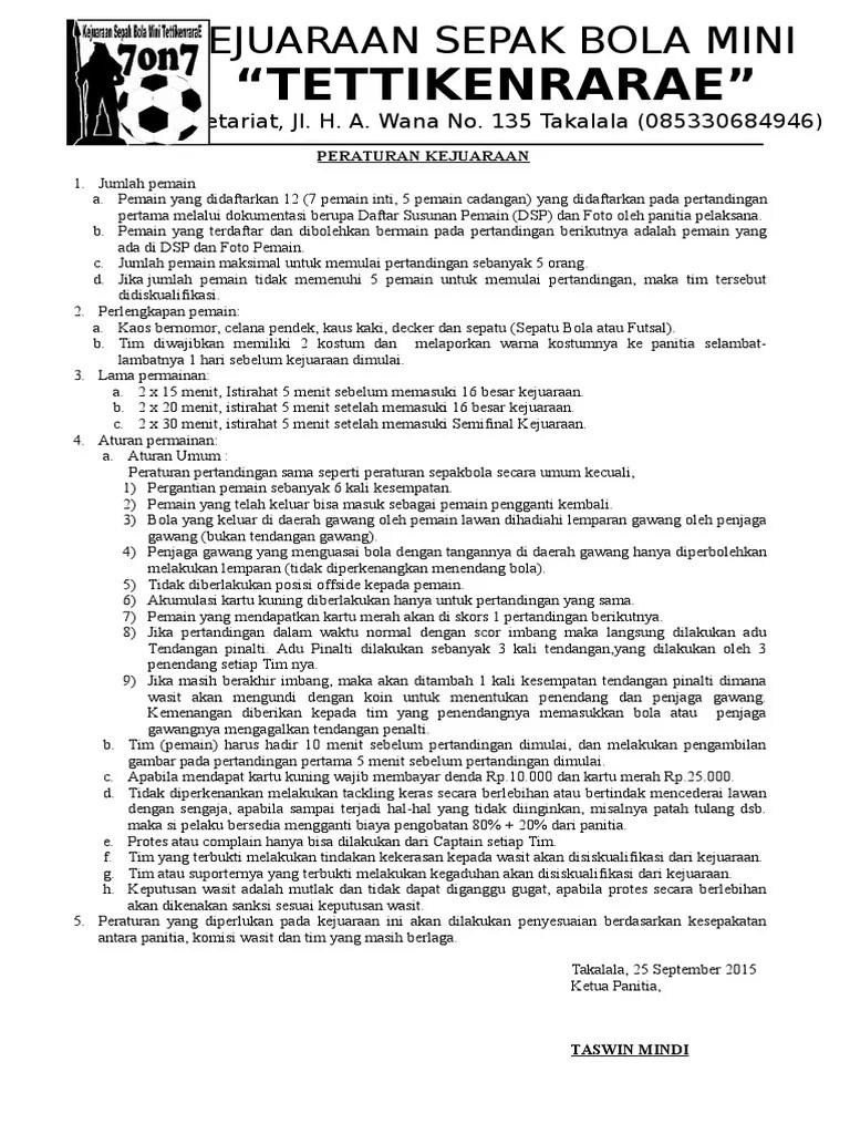 Sepak bola adalah cabang olahraga yang paling banyak digemari dan menarik perhatian masyarakat. Akhirnya semoga kegiatan kejuaran sepak bola warto cup 2011 ini dapat terselenggara dengan lancar dan bermanfaat bagi kita semua. Contoh proposal 17 agustus lengkap dengan biaya. Untuk mengadakan sebuah turnamen apapun khususnnya turnamen sepakbola proposal merupakan bagian yang tak terpisahkan dari kegiatan tersebut, karena proposal . Berikut jadwal festival pagustas musim 2020 paguyuban sekolah sepak bola .